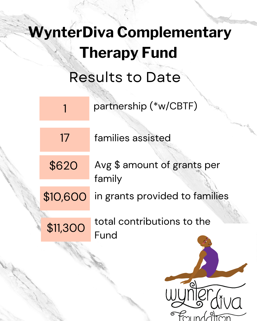 The Foundation has two goals. 1) Wynter Complementary Therapy Fund - Periodically, the Foundation will distribute funds to the Children’s Brain Tumor Foundation with these funds being earmarked for families seeking complementary wellness treatments for their child who is currently feeling the effects of brain cancer. 2) Provide dance scholarships- at premier NYC dance studios for talented youth dancers who have a financial need.